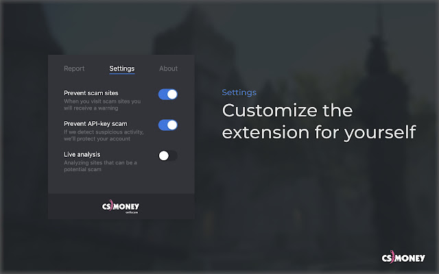CS.Money Antiscam 让用户了解访问过的任何诈骗网站以及用户帐户上的可疑活动。