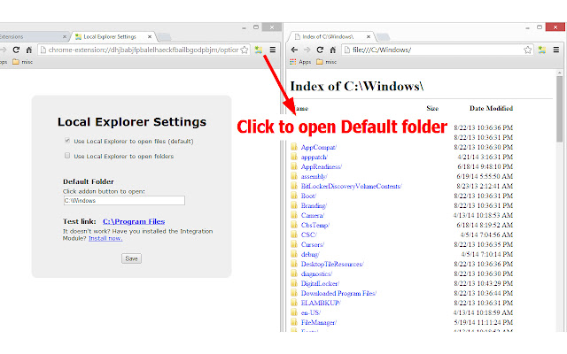 - 第 3 步:在 Windows 上,下载并安装此应用程序 http://goo.gl/trX9bB 以进行 Windows 资源管理器集成,只需运行“LocalExplorer-Setup.exe”一次即可开始使用。现在您可以在浏览网页时直接打开本地文件链接。