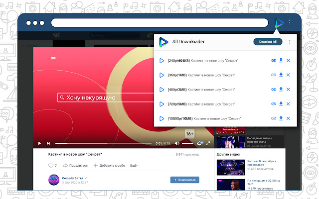 只需单击 VDP 图标即可打开弹出窗口并下载视频或音频!