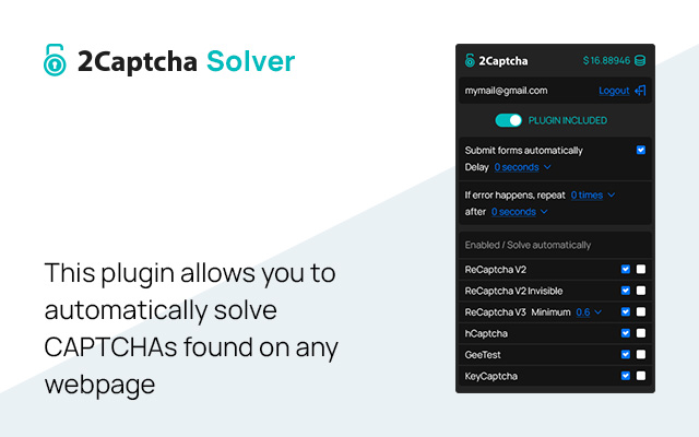在收到验证码解决方案后启用自动提交表单。请特别注意此选项。某些 Web 表单没有对指示的数据进行验证。它会导致页面刷新,并显示一条错误消息,指示要填写的字段。扩展程序将向 2captcha API 发送一个新的验证码解析请求,然后将一次又一次地发送一个表单,直到您关闭此浏览器选项卡或您在 2captcha 上的余额不足。