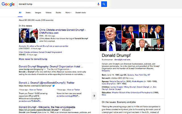 将此应用程序添加到您的 Chrome 浏览器,并将“Trump”的所有实例替换为“Drumpf”。