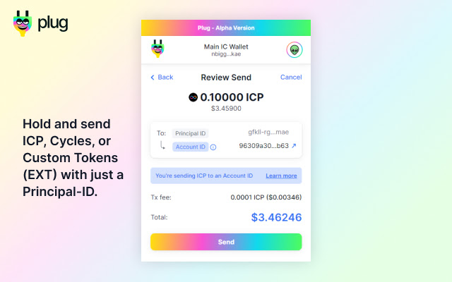 一个易于使用的浏览器扩展,允许您持有、发送和管理 ICP、Cycles、自定义令牌(EXT 和 DIP20 标准)和 NFT,只需一个主体 ID ? 在任何集成 Plug 以触发交易的应用程序中使用它们(您从扩展中接受/拒绝),并显示您的余额!您还可以使用 Plug 登录集成 IC 应用程序,使用您的主要主体 ID 作为您在所有应用程序中的身份。