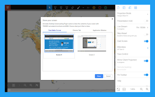 该插件可与您的 Annotate.net 讲师帐户无缝协作,以在 LiveStreams 期间启用网页注释和屏幕共享¹。当安装在课堂设备上时,您可以让学生在他们的学习中发挥积极作用,让他们能够使用“通过控制”功能注释网页和共享他们的屏幕。