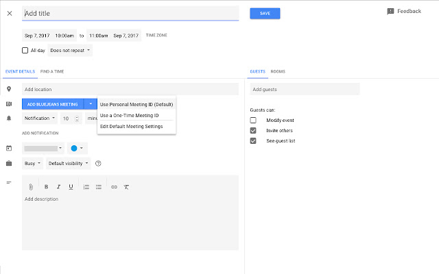 BlueJeans for Google Calendar