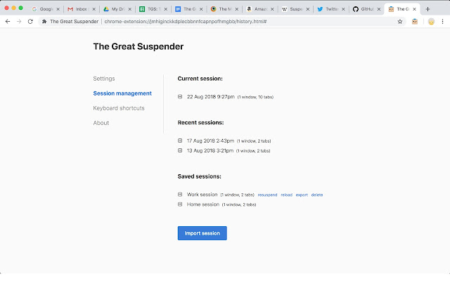 用于减少 chrome 内存占用的轻量级扩展。如果您同时打开很多标签,那就完美了。在可配置的时间长度后尚未查看的选项卡将在后台自动挂起,从而释放该选项卡消耗的内存和 CPU。