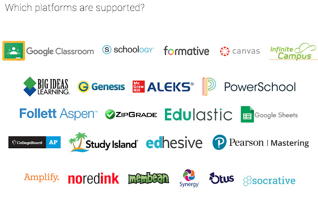 – Google Classroom – Schoology – Aleks (McGraw-Hill) – Edulastic – ZipGrade – Aspen (My Follett) – Study Island (Edmentum) – Google Sheets – Big Ideas Learning – Edhesive – Amplify – Socrative – Membean.com – AP Classroom (CollegeBoard) ) – 您计算机的剪贴板 – NoRedInk.com – goFormative – 爱达荷州数字学习学院 – Canvas (Instructure) – Otus – AgilixBuzz – VocesDigital – Albert.io – EdPuzzle