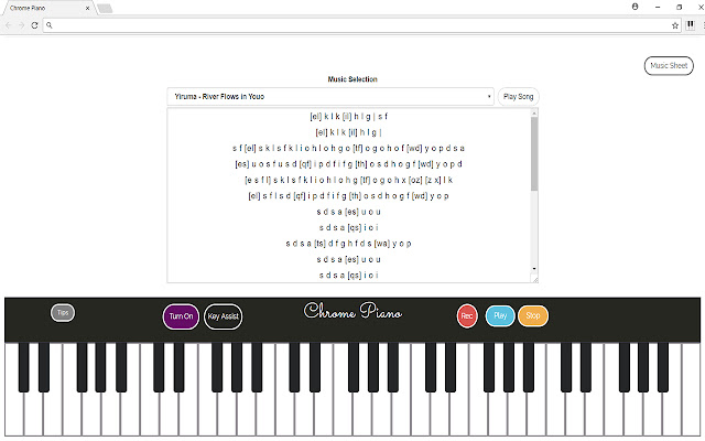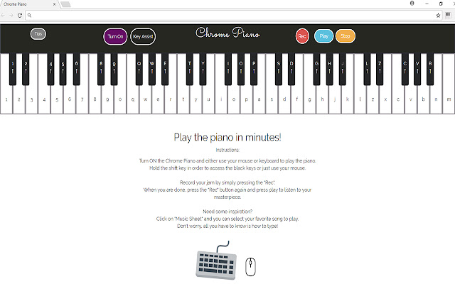 使用键盘和鼠标在 Chrome 浏览器中弹奏钢琴。