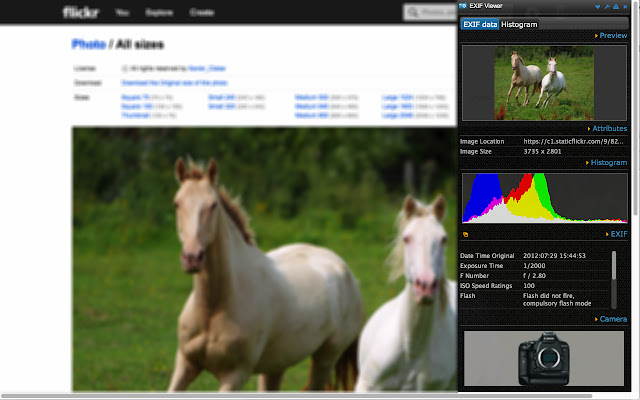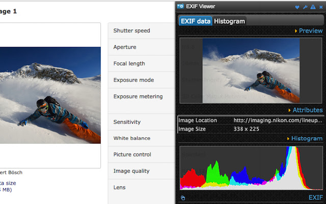 - 然后在浏览器右侧的单独面板中显示图像/exif 信息。