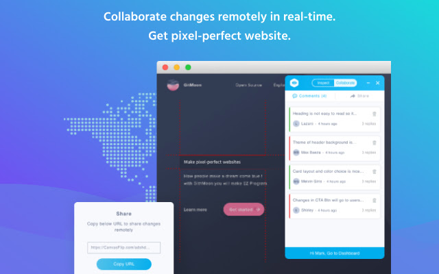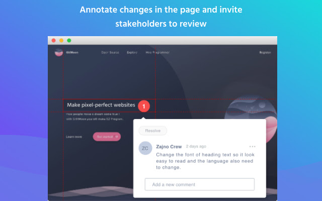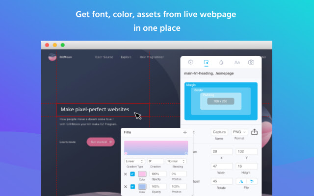 - 检查和更改网页中的所有设计属性,如位置、不透明度、颜色、渐变、排版等。