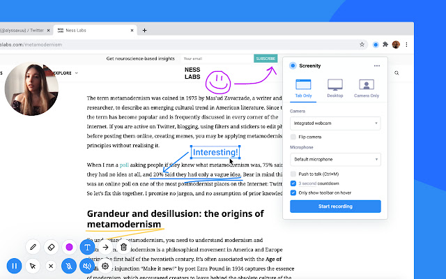Chrome 最强大的屏幕录像机。 捕获,注释,编辑等。