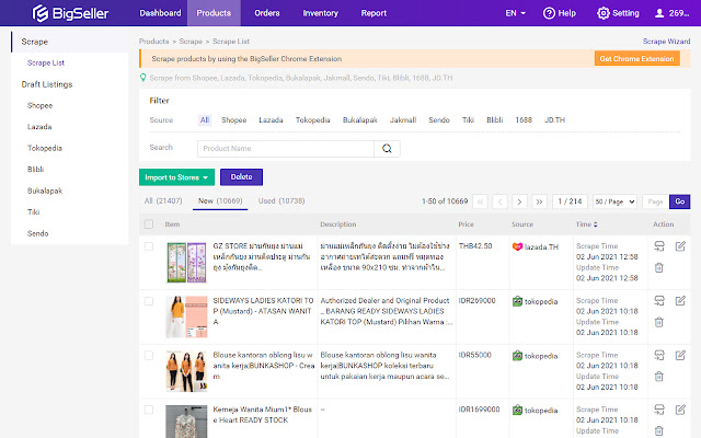 BigSeller Product Scraper, scrape products from multiple marketplaces and import them to your online stores. Eliminate the busy work and engage more prospects with BigSeller!