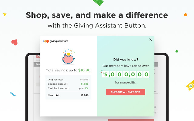 将您的现金放回自动驾驶仪,再也不会忘记。在 3,000 多家商店购物,赚取巨额现金返还,并立即获得顶级优惠券 - 同时自动支持您最喜爱的公益事业。