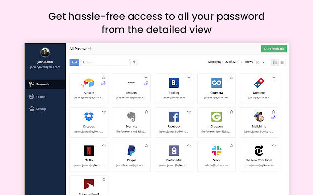 Zoho Vault 的 Chrome 浏览器扩展让您可以有组织地访问您的所有