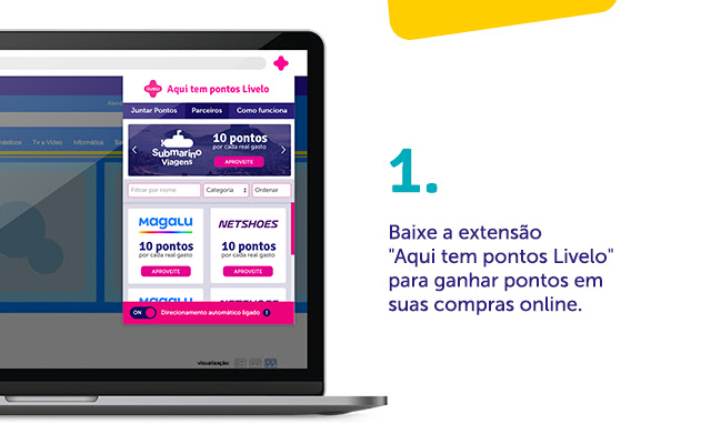 有了这里,您就有了 Livelo 积分!在您的浏览器中,您永远不会忘记您可以获得 Livelo 积分,因为您会在访问 Livelo 合作伙伴网站时立即收到通知!然后只需使用您的积分来兑换您的奖励!