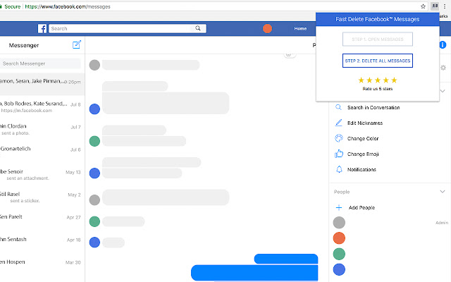 只需2次点击即可删除Chrome中的所有Facebook消息。