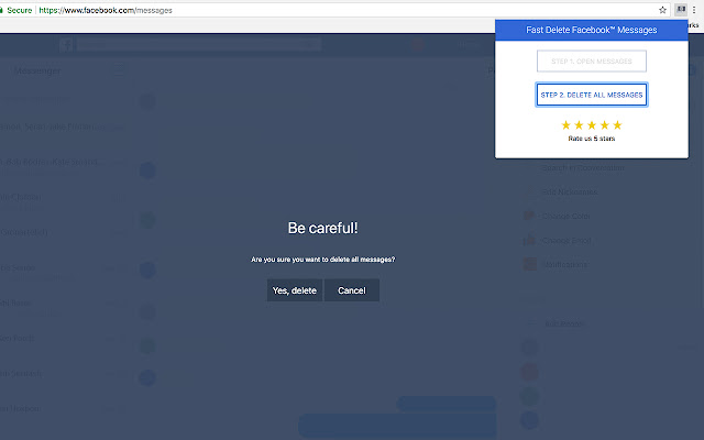 完成! 在短时间内扩展将自动删除所有聊天中的所有fb消息。