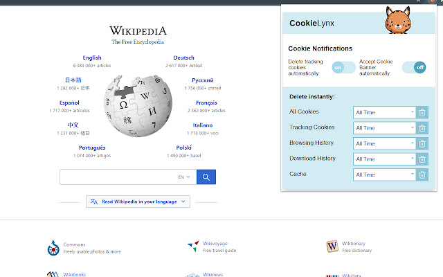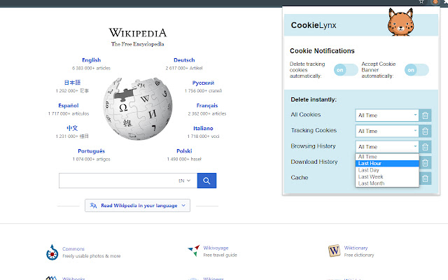 CookieLynx 在访问网站时会自动删除广告商的跟踪数据。