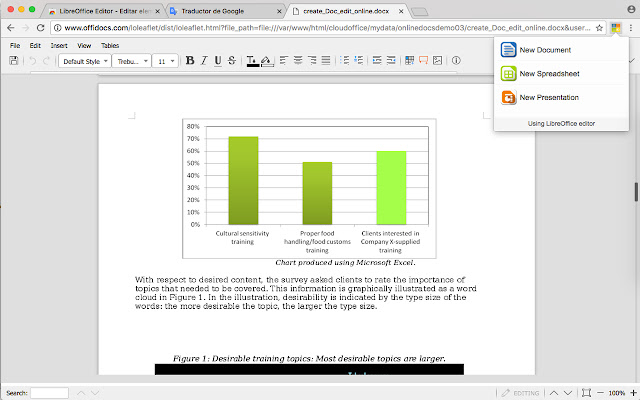 2) 它会检测您何时访问 doc、xls、ppt、txt、rtf、csv 或 odf 文档,并使用此 LibreOffice 编辑器直接打开它。