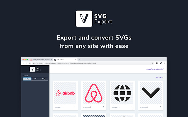 SVG Export 是一个很棒的工具,可以在网站上搜索 SVG,让您可以轻松地将它们快速导出为 PNG、JPEG 或 SVG。