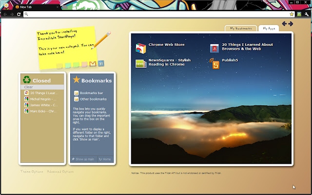 Incredible StartPage 是一个高效的起始页替代品。将您喜爱的所有书签放入精美的相框,享受我们的便利功能!自 2010 年以来,我们一直是特色扩展!
