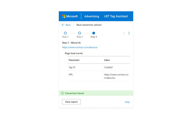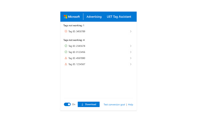 • 导航到您网站的任何页面,标签助手会告诉您页面上有哪些 UET 标签以及它们是否正常工作。