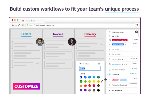 Gmail 团队的多合一销售、服务、帮助台和任务管理器。 Gmail 中的可视化板,用于共享、分配和跟踪电子邮件。