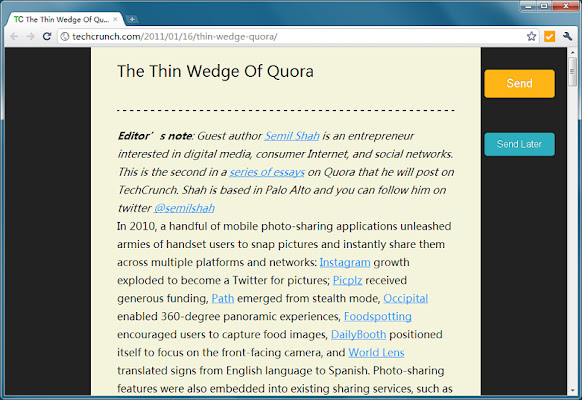 * 针对 Google Reader、Wikipedia、Quora、Hacker News 和问答网站的 Stack Exchange 网络、Metafilter 进行了优化