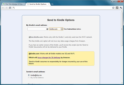 打开“选项”页面,设置您的 Kindle 的电子邮件地址