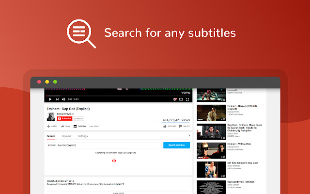 该扩展还支持直接从 YouTube 视频页面从 OpenSubtitles.org 和 Amara.org 搜索和使用字幕。现在您可以搜索所有语言。请注意,YouTube 上只有 5-10% 的视频在 OpenSubtitles.org 和 Amara.org 中有相应的字幕,因此您可能无法搜索和找到所有视频的字幕。