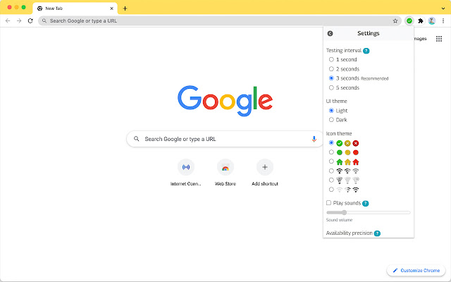 A:该扩展程序监控 Internet 连接并报告 3 种状态: