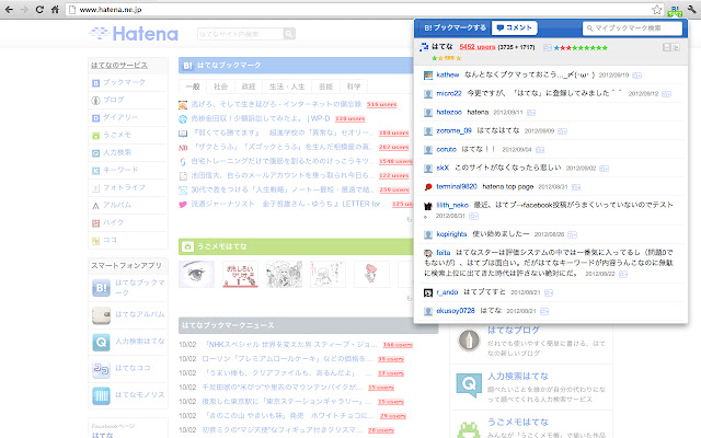 --使用评论查看器在浏览页面查看Hatena书签评论。