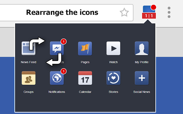 facebook 的通知中心是谷歌 Chrome 浏览器的扩展, 它提供了来自 facebook 的警报的。它显示通知, 直到用户完成关联的操作。用户可以在通知中心选择图标的顺序。 你会发现在你的 Facebook 新闻 feed, 信息, 日历, 照片, 搜索, 网页和通知的新事件指示器的快速链接。 您可以按您喜欢的顺序重新排列按钮。只需按下图像, 将其拖到新位置并将其删除。新订单将自动保存在 cookie 中。 如果这个解释对你来说很困难, 只需按照以下步骤操作: 1. 将鼠标移到第一个图标 (新闻提要), 按下并按住鼠标左键, 将对象向右移动, 然后松开鼠标左键。2. 现在你有了新的图标顺序。第一个图标是消息, 第二个是新闻提要。3. 现在, 您可以按照步骤1中的说明继续将图标移动到新位置。5. 您的图标顺序是自动保存在您的浏览器 cookie 下的名称 cookie-fb-ql-v7011。 最初发布作为 chrome 应用程序在 2013年, Facebook 的通知中心是在2018年1月提供 chrome 扩展。 所有谷歌 Chrome 用户可以看到关于新的通知和信息从 Facebook 与这个插件的视觉警报。 Facebook 是一种社交工具, 它将人们与朋友和其他工作、学习和生活的人联系在一起。人们用 Facebook 来跟上朋友。 所有版权属于他们各自的所有者。 免责声明: 此 Chrome 扩展是关于 facebook 的通知, 与流行的社交网站 facebook 没有联系。所有版权属于他们各自的所有者。Facebook 不支持或赞助这个 Chrome 扩展。此 Chrome 扩展不是拥有的, 不是授权的, 也不是 facebook Inc. facebook 的子公司, facebook 和 F 徽标, FB, 脸, 戳, 书, 信使和墙都是 facebook Inc. 的商标此 Chrome 扩展的内容不是由 Facebook Inc. 提供或审查的所有的文章, 图像, 徽标和商标在这个 Chrome 扩展是他们各自所有者的财产。 感谢您使用此 Chrome 扩展与快速链接和提醒到 Facebook。请随时与您的 Facebook 信使, Whatsapp, 谷歌 Plus 分享。