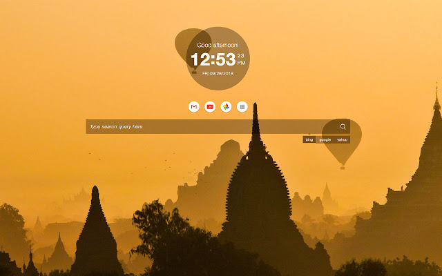 我们的新标签页通过 Bing.com 提供网络搜索,并在设计中显示本地日期和时间。
