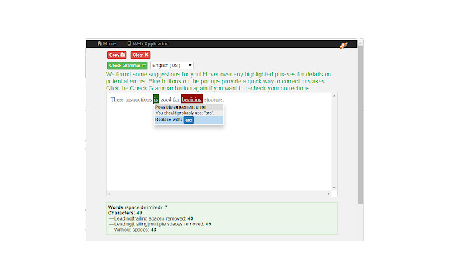 显示字数和字符数。添加上下文菜单项以检查网页上所选文本的语法。