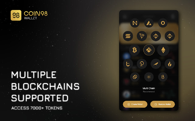 Coin98 扩展钱包为您提供在 21 种流行区块链上存储、发送、接收的快速、方便和安全的程序,包括以太坊(ETH 和 ERC20 代币)、币安智能链(BNB 和 BEP20 代币)、Solana(SOL 和 SPL 代币)、Polkadot , Kusama, Avalanche C-Chain, HECO Chain, Near, TomoChain, Tron, Polygon (Matic), Fantom, THORChain Cosmos, BandChain, Terra (Luna), Kava, Persistence, xDAI Chain, KardiaChain, Ronin。我们希望在不久的将来集成更多区块链,以更接近我们推动 DeFi 大规模采用的目标。