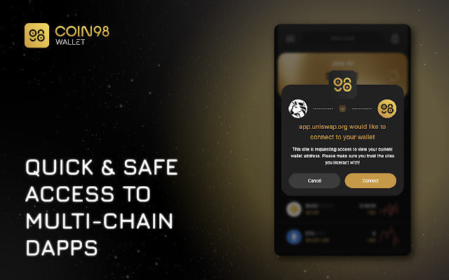Coin98 钱包是排名第一的非托管、多链钱包和 DeFi 网关,旨在以安全可靠的方式将用户无缝连接到加密世界。
