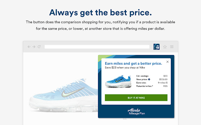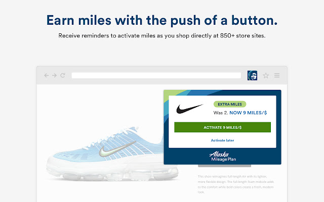 一键直接从 850 多个商店站点激活 Alaska Airlines Mileage Plan™ 里程,再也不会错过里程。