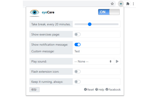 根据这条规则,每 20 分钟,将视线从计算机上移开,看 20 英尺外的东西至少 20 秒。 eyeCare 会以多种方式提醒您休息一下。