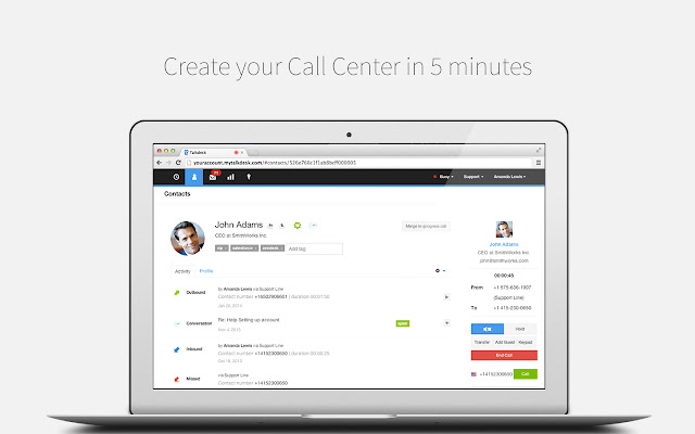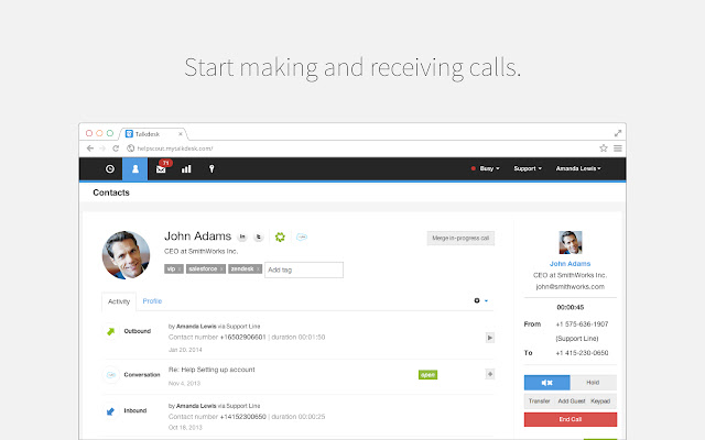 直接从您的帮助台、CRM、销售软件和任何网站点击呼叫。