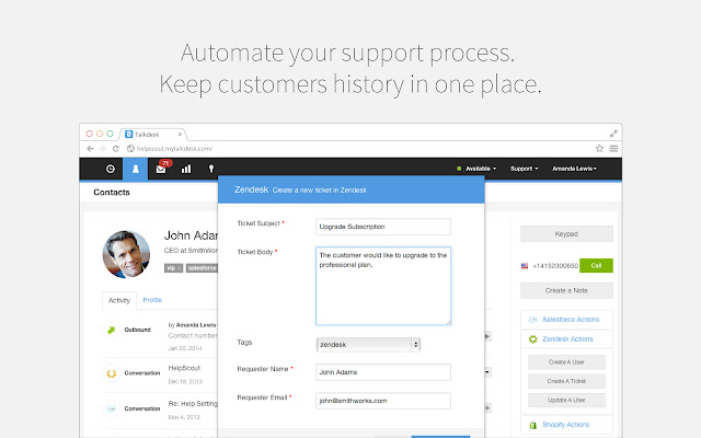 TalkdeskⓇ Click-to-Call Extension 可让销售、支持、服务和营销代表无缝拨打电话。使用此扩展程序将电话号码* 转换为可点击的链接,允许从您最喜欢的 CRM 和服务台应用程序或使用 Talkdesk Enterprise Cloud Contact Center 的任何网页进行快速拨号。