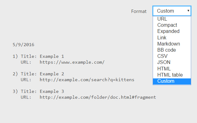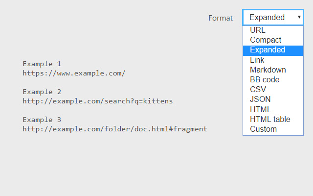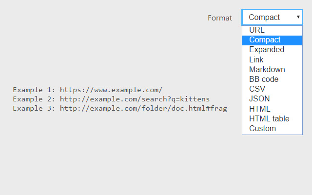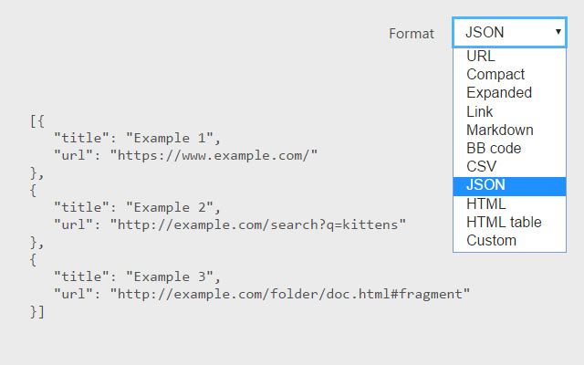 ● 使用内置格式,如 URL、Compact、Expanded、Link、Markdown、BB 代码、CSV、JSON、HTML 和 HTML 表格。