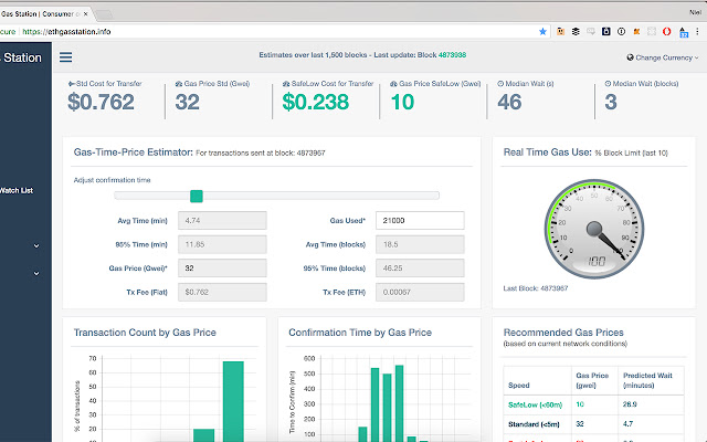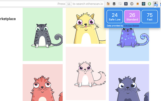 此扩展程序可帮助您跟踪以太坊区块链上的拥堵情况。它显示了最新的费用,因此您可以决定什么最适合您的交易定价。