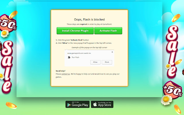 此扩展程序为 GamePoint 游戏启用 Flash,因此您不必这样做。