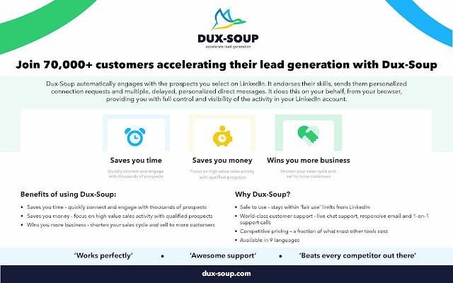 Dux-Soup 让您可以轻松地在 LinkedIn 上找到、吸引潜在客户并与之互动。