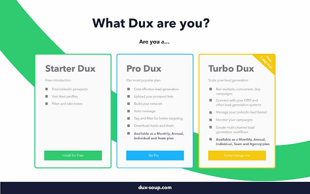 如有任何问题或您想了解的内容,请通过 info@dux-soup.com 向 The Dux 发送电子邮件。您也可以通过 Facebook (Dux-Soup) 或 Twitter @DuxQuack 关注和联系我们。