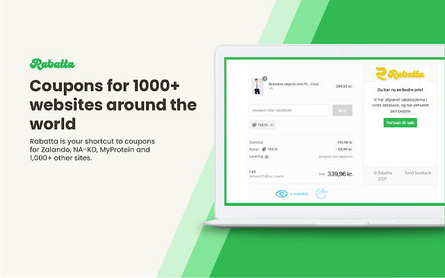 Rabatta 是一种工具,可在您浏览丹麦和国际网上商店时找到最佳折扣代码。