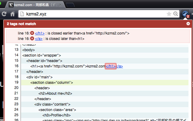 这是一个检测 HTML 开始/结束标签过多或不足的扩展。如果有任何错误,将显示数字。由于我是用JS查源的,所以不对外发。 * 如果在带有表单的页面上行为异常,请暂时将其关闭。