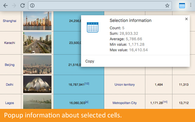 - 有关选定单元格的弹出信息(总和、平均值等)