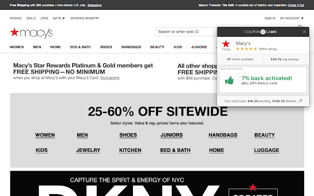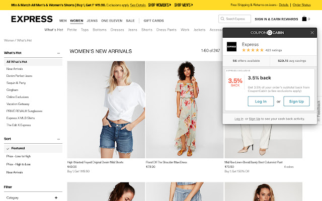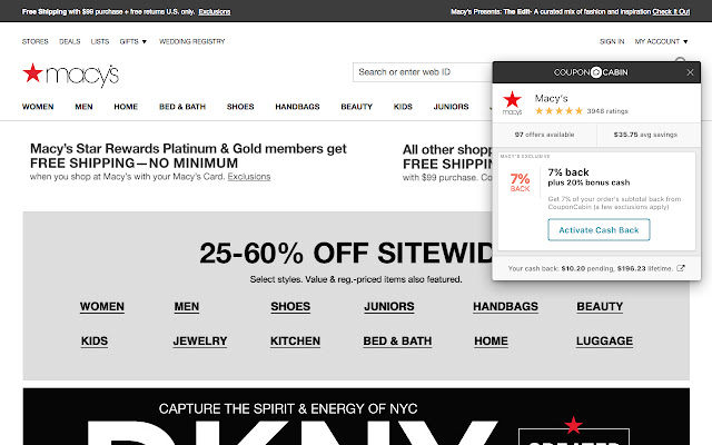 它是免费且易于使用的。只需安装 The CouponCabin Sidekick 并登录,以便我们知道在您下订单后将现金存入何处。当助手出现时,单击“激活现金返还”按钮以赚取现金返还,单击“查看优惠”按钮以查看可用优惠券。有了 The CouponCabin Sidekick,您再也不用支付全价了!