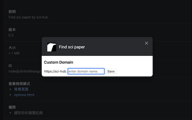 - 自定义网域:右键此外挂按钮>选项,于开启的页面中输入欲自定义的网域名称后储存即可